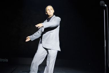 In 2002, De Keersmaeker created her second dance solo, Once, to the music of Joan Baez. Playing the entire album Joan Baez in Concert, part 2, the choreographer set out to examine various possible answers – in movement, voice, and gesture – to the emotions and power embodied by Baez’ music and lyrics, which also inspired the civil rights movement in the United States in the 1960s. In 2023, EXIT ABOVE was created to songs written especially for the work and performed live on stage by singer-songwriter Meskerem Mees and dancer-musician Carlos Garbin. In BREL, De Keersmaeker and Mariotte, who will share the stage for the first time, will continue this trajectory, and further explore the challenges and potential of choreographing to songs. The artists find inspiration in the complexities and tensions inherent to Brel’s life and oeuvre. In BREL, they aim in the first place to raise questions. BREL is a search, an exploration of the shifts and gaps in time that come to the surface when revisiting Jacques Brel’s famous chansons today.